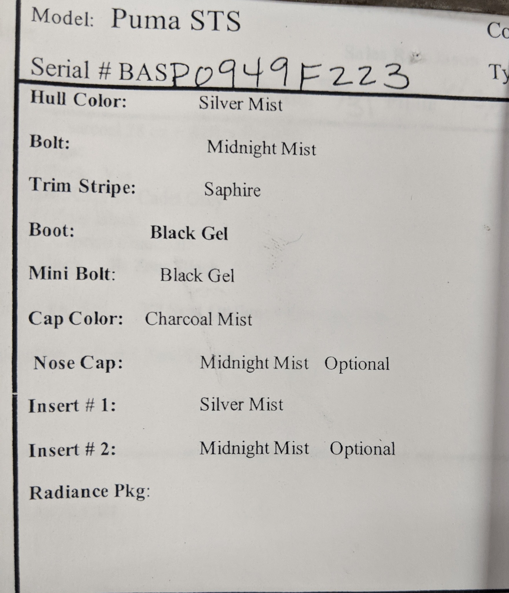 Serial : BASP0949F223 PUMA STS