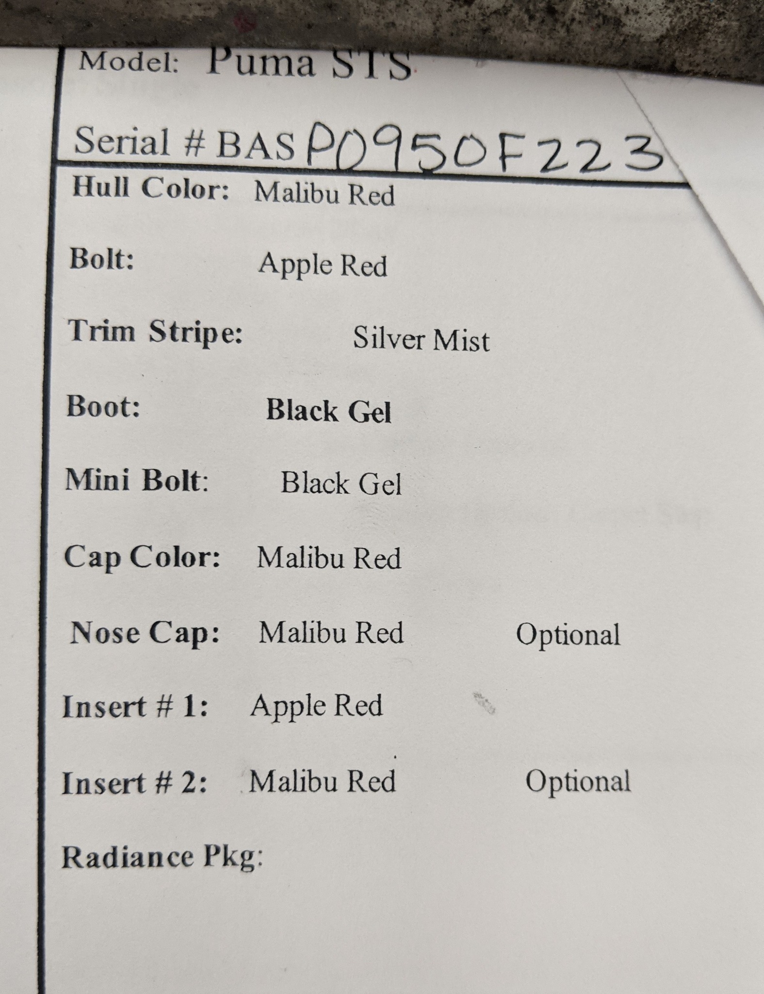 Serial : BASP0950F223 PUMA STS