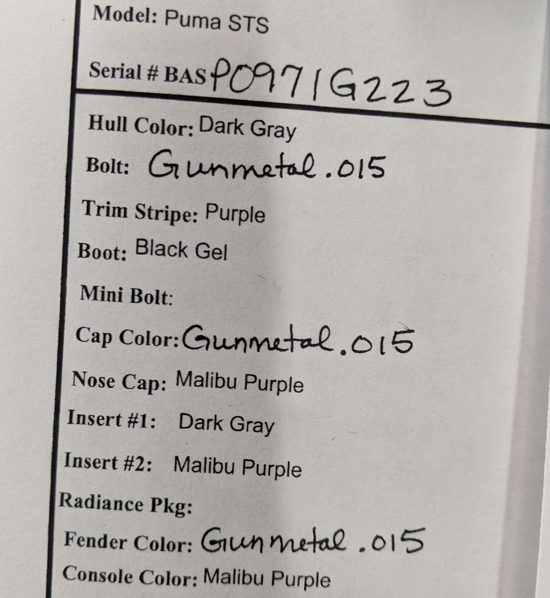 Serial : BASP0971G223 PUMA STS