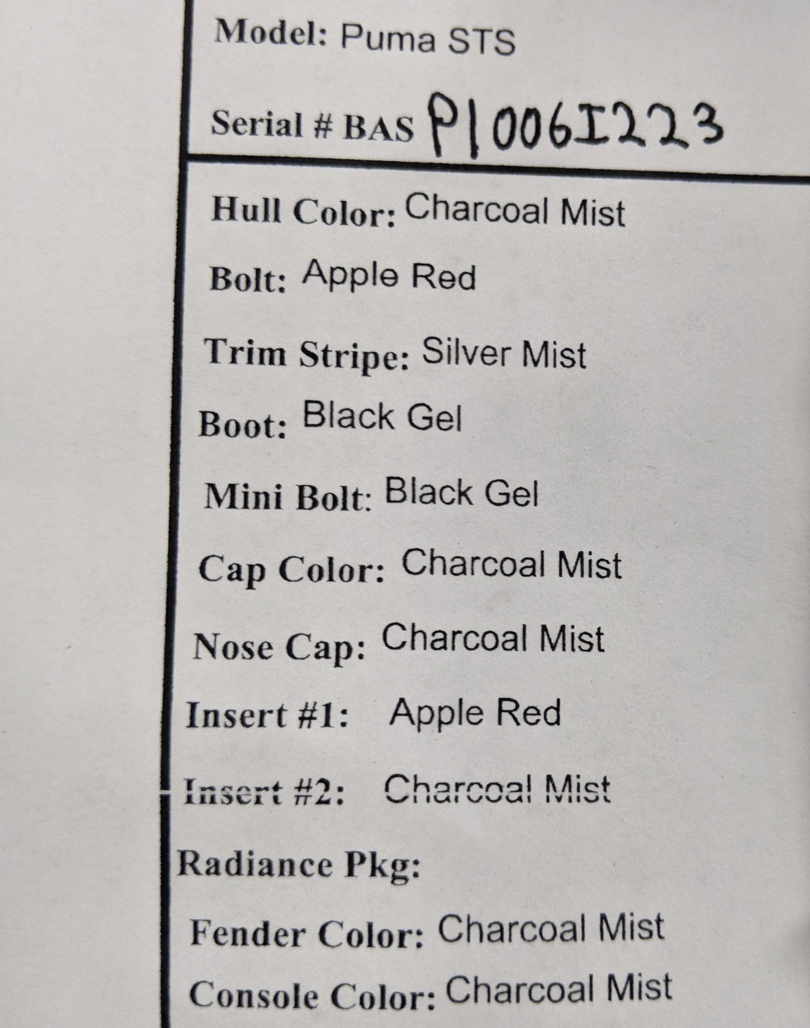 Serial : BASP1006I223 PUMA STS