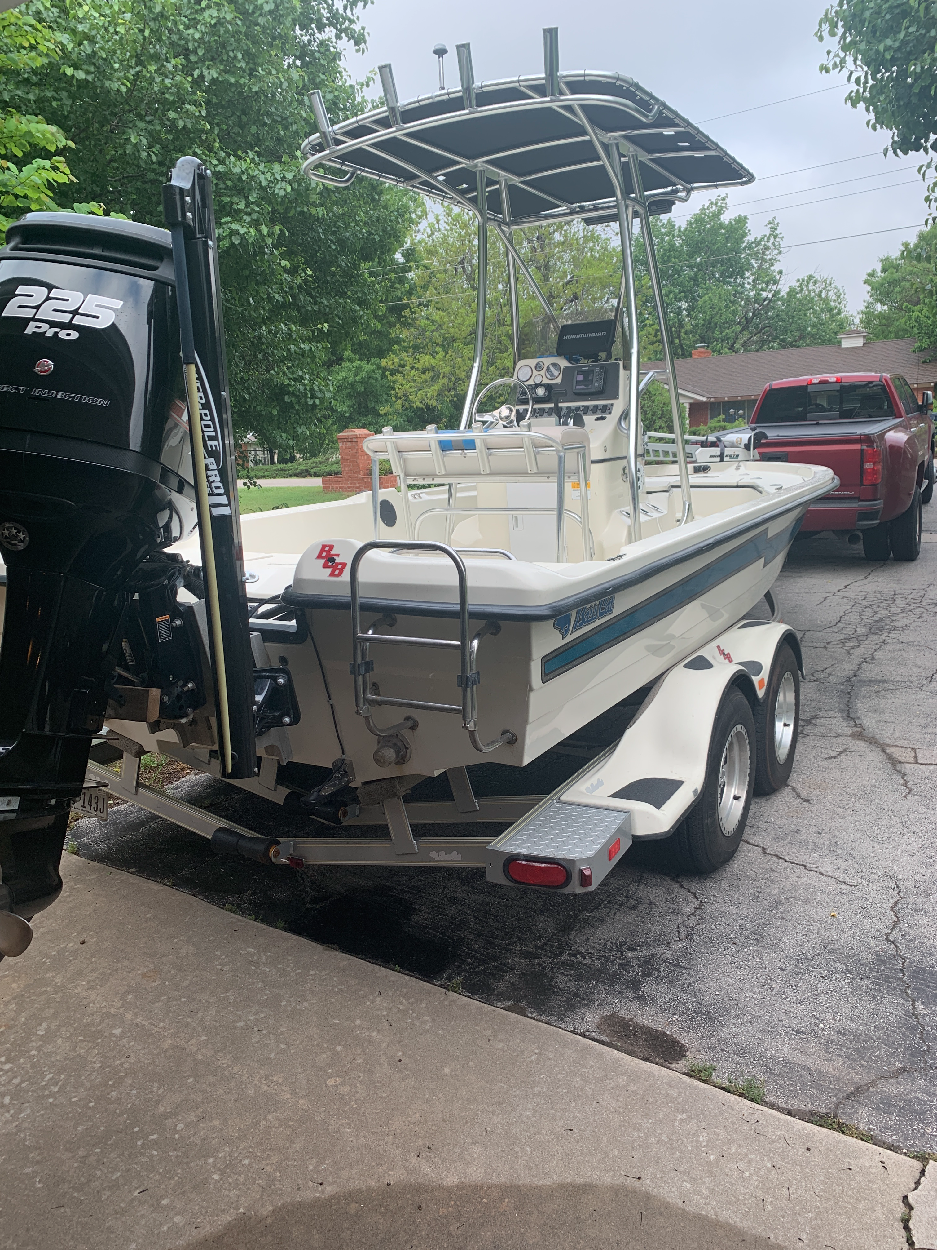 2014 Basscat Bay Cat 22 ft with 2016 Mercury Pro XS 225 and tandem axle bass cat trailer Located in OKC Custom T Tops, 112 Minn Kota, 2 Humminbird GPS Fish Finders, Power Pole, On Board battery charge, Jack plate.  Around 250 hours. $42k Call or Text (720)757-5146