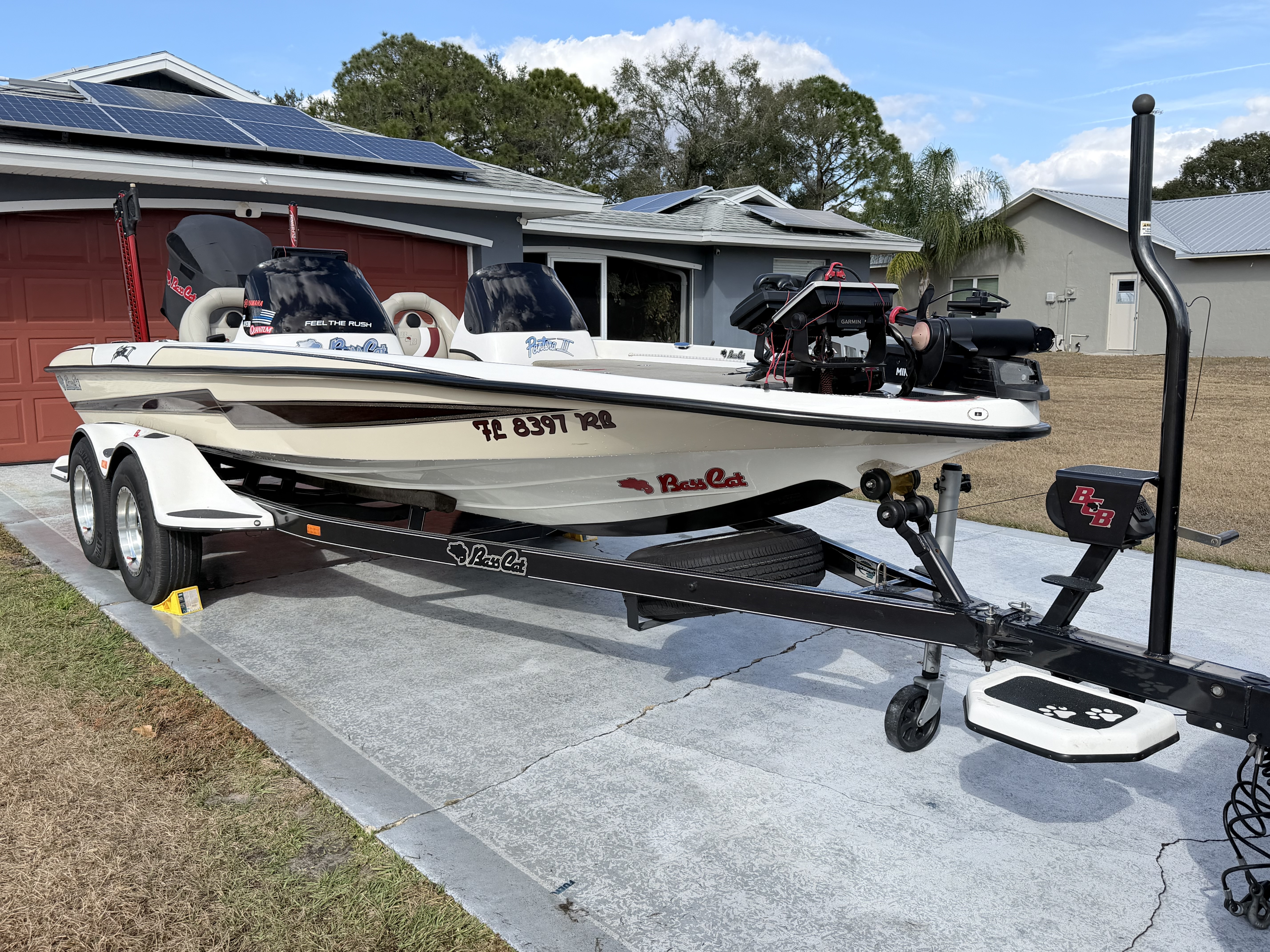 Custom Bass Cat Tandem Axle Trailer w/ swing away tongue, step bar, Bass cat LED puddle lights on step and under console.