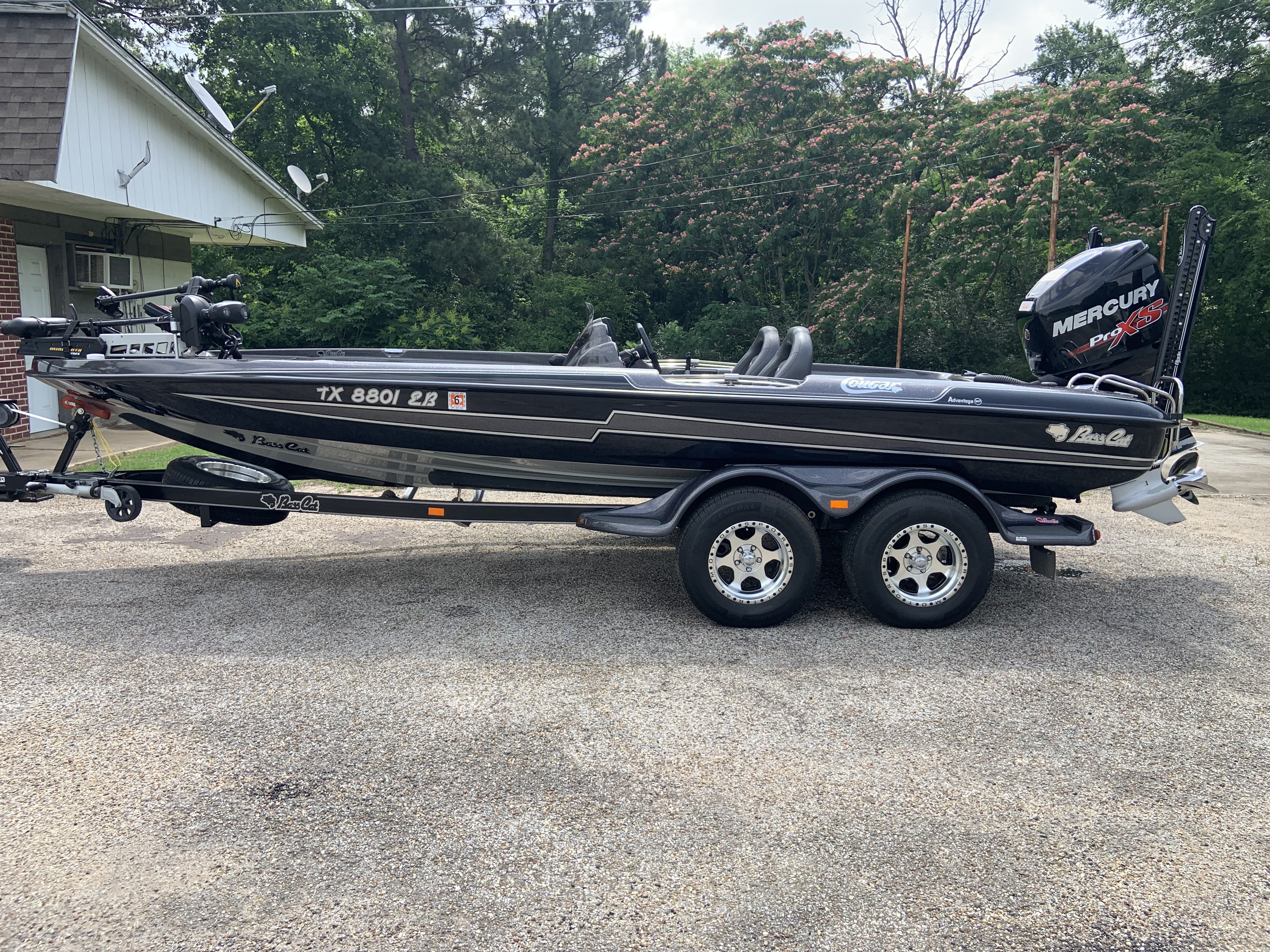 2018 Cougar Advantage SP. $47900. Mercury 250 Pro XS with only 100.4hrs. 112lb Ultrex. Helix 9 in dash. Helix 9 and 10 on the bow mounted on a ballzout dual mount with mega live and mega live target lock . Dual 8ft power poles. Bass Cat travel cover. BCB engine cover and power pole covers. Matching but seat and sit down seat. Drivers seat has one rip as pictured but I have 2 factory lower seats for the boat just haven’t installed yet. Located in Diana TX.Titles in hand. Call or txt 430-558-1251