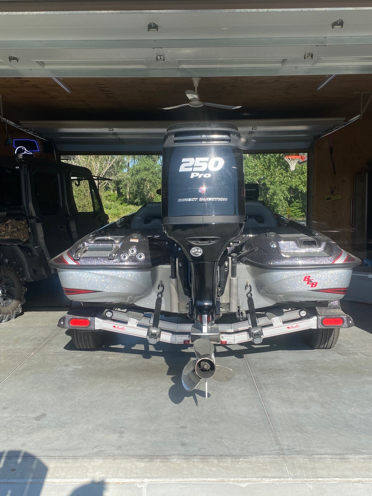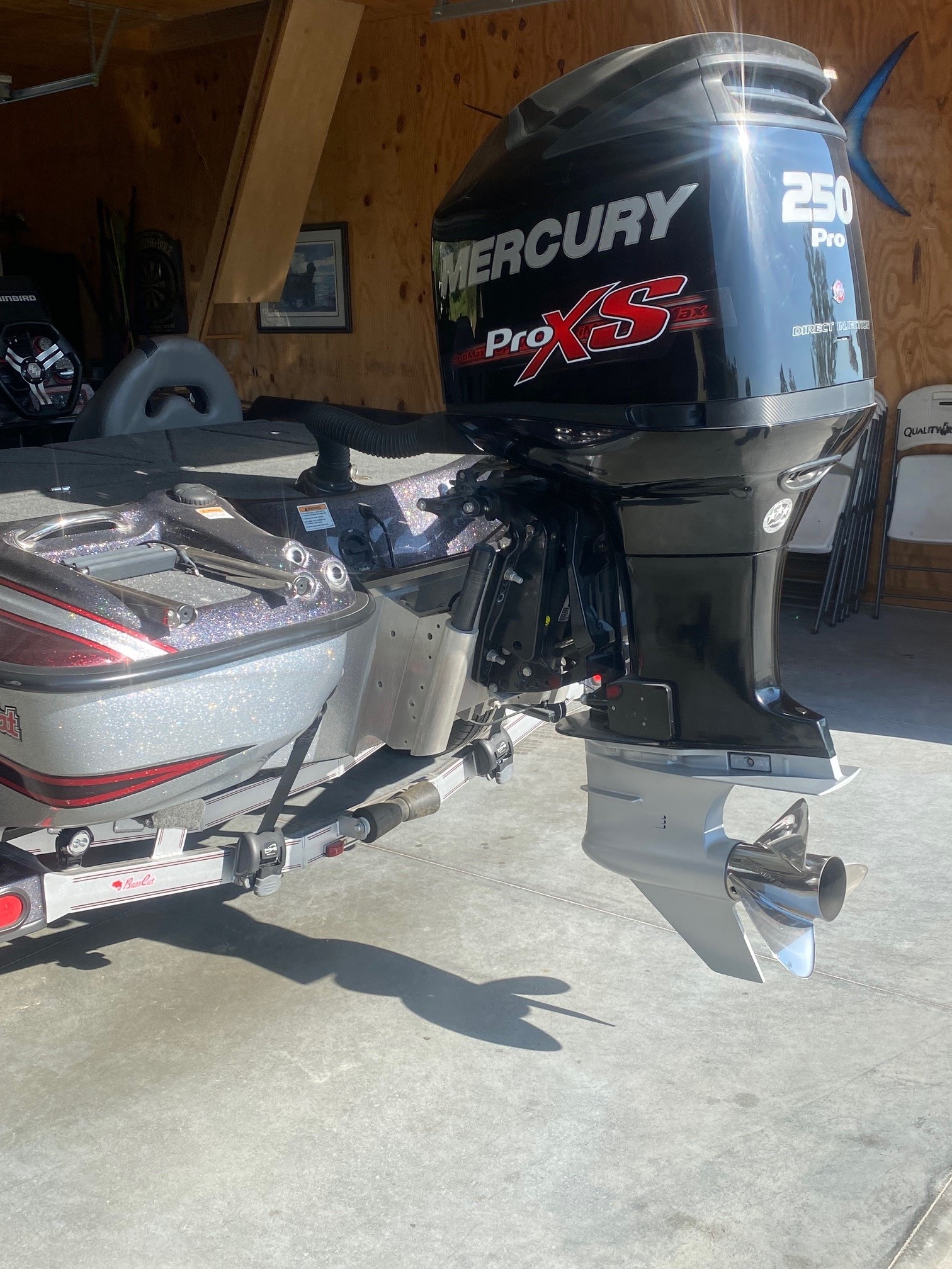 One owner, garage stored since new. Two trips per year. 250 Mercury Pro XS. w/ Fury 26p. 6″ power Atlas jack plate. 2000-3000 miles on trailer. Three Cabela blue top batteries. Minnkota 4 bank charger, Minnkota i-pilot Ultrex 112lb 36volt. Garmin Panoptixs with Livescope (6 months old). Humminbird Helix 12 Chirp DI GPS G2n bow. Humminbird Helix 10 at console. Lithium Powerpack house battery M3426P (6 months old). Noco genius Gen 5 x2 charger. Black box for Livescope mounted in front rod locker. All aboard All sync system for Livescope mounted to Ultrex (6 months old). Customer cover and customer trolling motor dust cover.