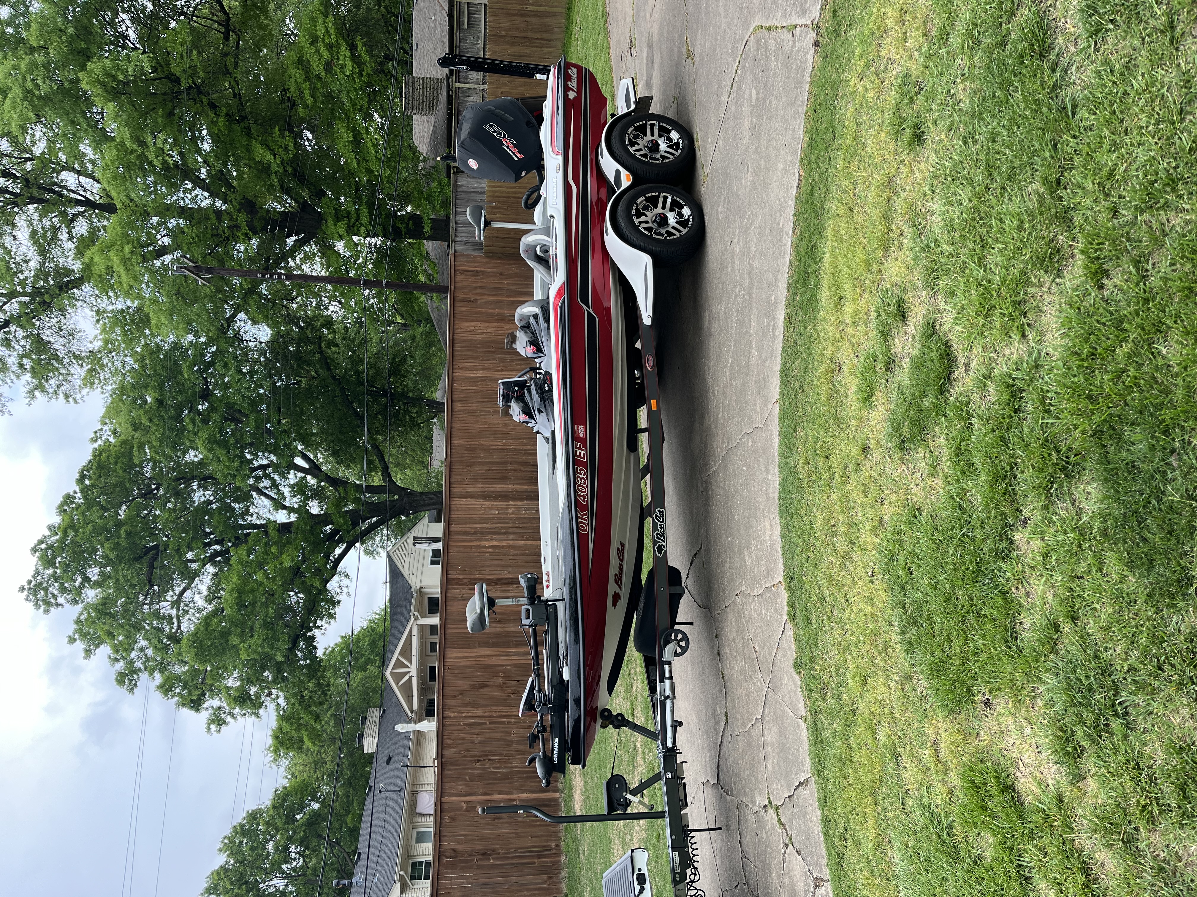 Basscat Stereo, hot foot, Bob’s jackplate, Blinker tilt/trim-jackplate controls, padded front deck, LED anchor light on power poles, No scratches like new condition. 2 oil changes, plugs changed, lower unit oil changed. Not run hard. Tulsa, OK 918-698-4689… $62,000