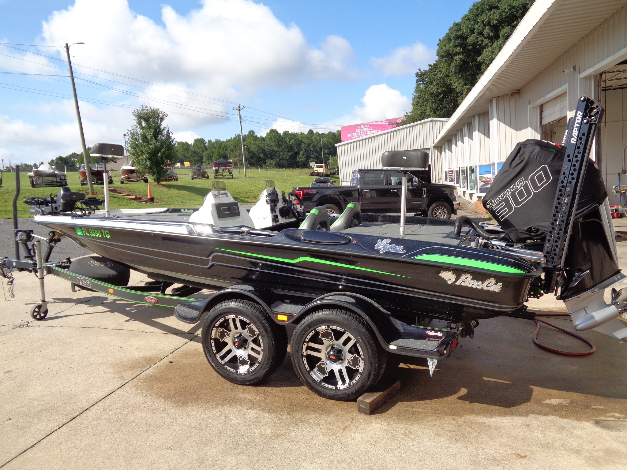 FOR SALE! 2020 Bass Cat Eyra with Mercury 300 HP Racing Motor! $85,000 (This boat belonged to Rick Pierce). ONLY 89 HOURS! We are selling for second owner. Light Gray Hull; Midnight Mist; Vicious Lime plus Premium Package Equipment Recently Serviced. - Platinum Warranty until 2025 Garmin Force 100 50" Trolling Motor w/GT54 XDCR upgrade 2 - Garmin Echomap Ultra 106SV Garmin Panoptix Humminbird Solix 10 Chirp Dual Console with Removable Port Side Console Fiberglass Step Box Padded Front Deck JP Audio MM50 Media Center MinnKota 440 4 Bank Battery Charger Dual Pro Trim Mercury Power Steering Aurora Sunbrella Cover Night Stalker Light Kit Raptors Sea Star Hydraulic Jack Plate upgrade Hambys Bow Protector 18" Bass Sport Wheels Grab Post W/ Steps LED Reverse Lights