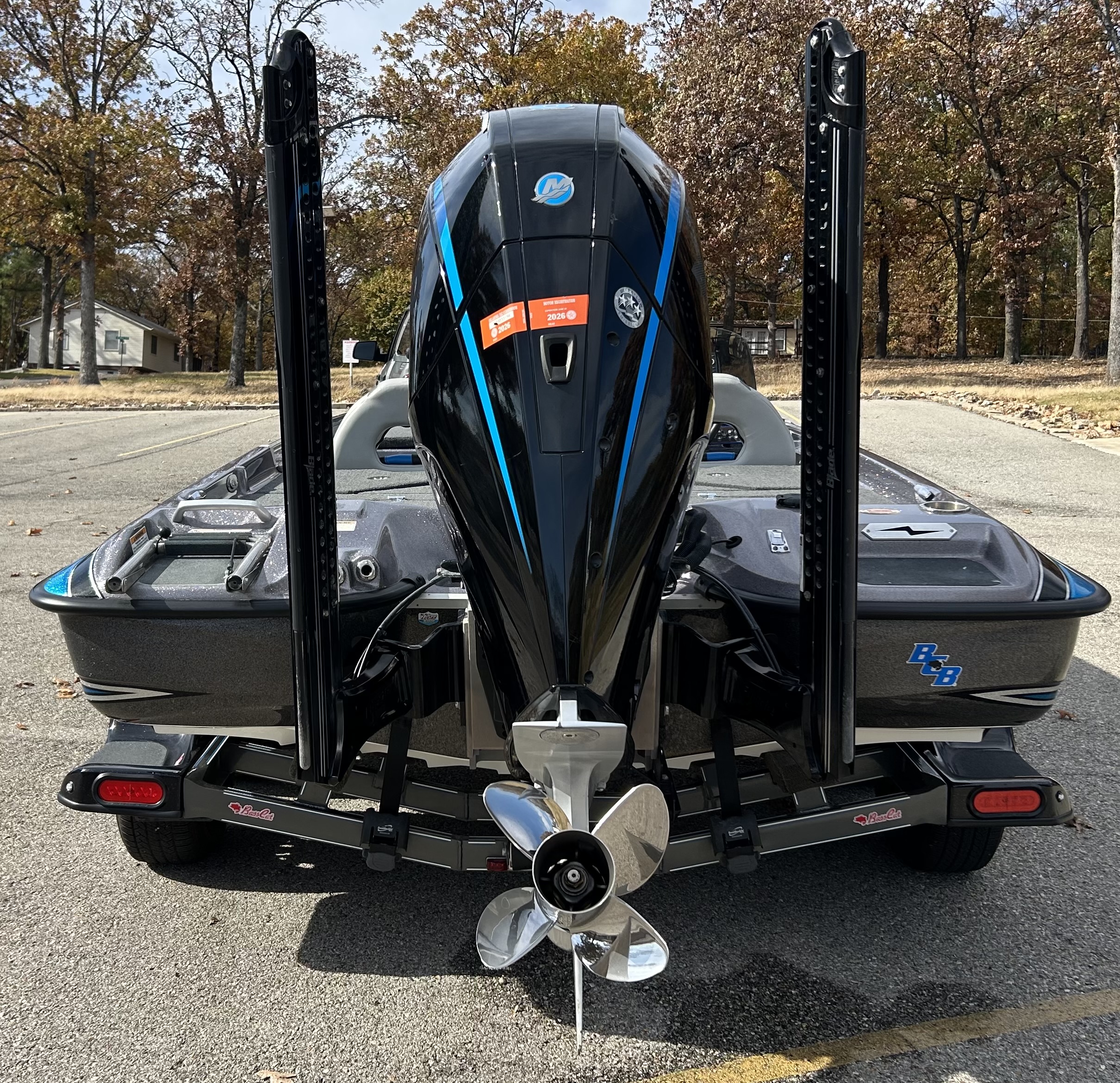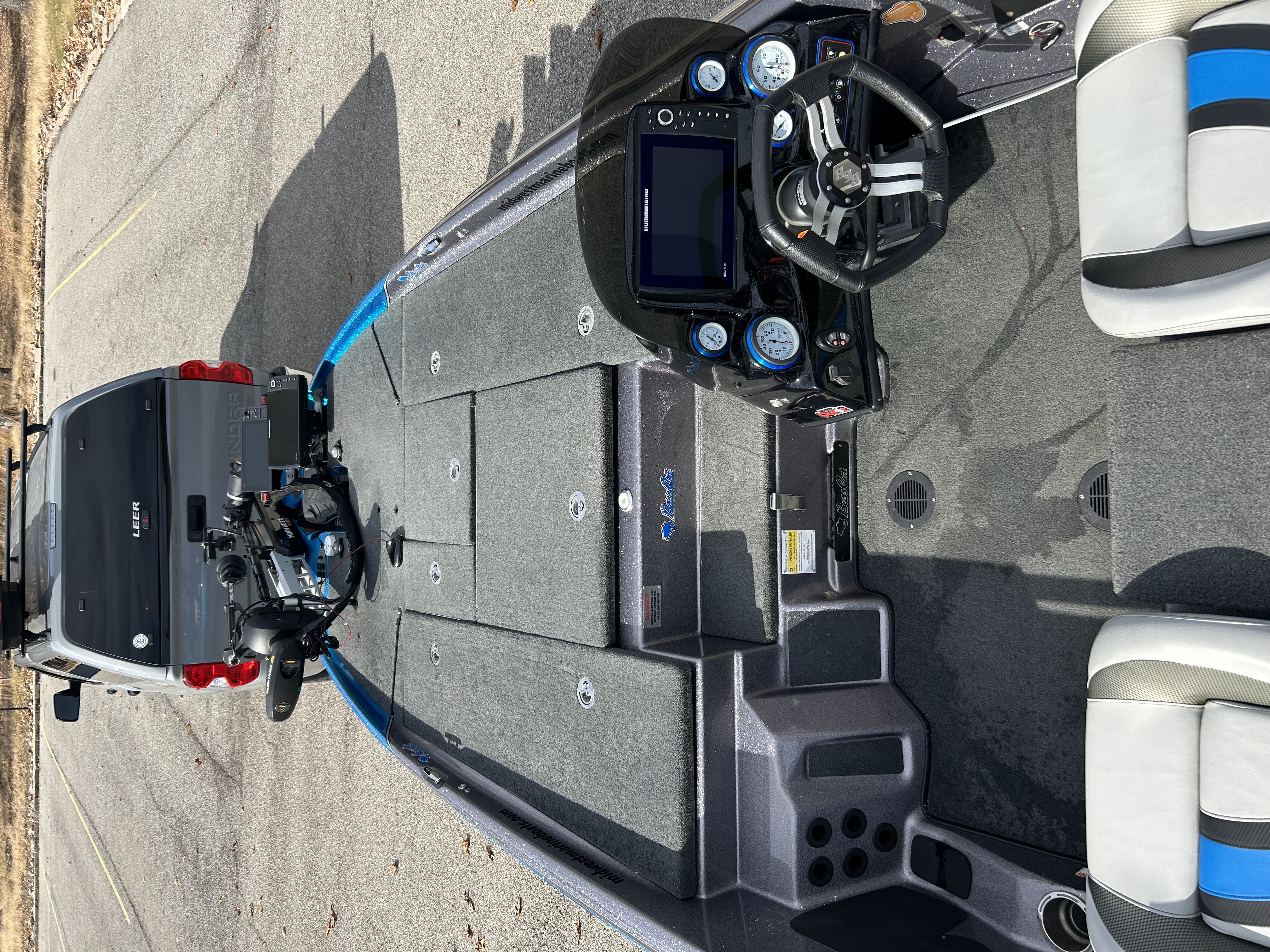 2021 Bass Cat Cougar FTD with 2021 Mercury Pro XS 250 HP 4-stroke. 25 pitch 3-blade Fury prop. 8’ Power-pole blades with remote and stop switches. Full Pro Guide lithium batteries (2 years old) with Powerpole charge system. Hummingbird Helix 10 at the helm with side-scan. Hummingbird Helix 12 at bow with MEGA-360 and ethernet link to helm. Garmin GPSMAP 1222 with LVS34 Livescope. All electronics are installed by The Bass Tank with their power harness wiring. New General trailer tires this year. 400ish hours and complete maintenance performed up to date.