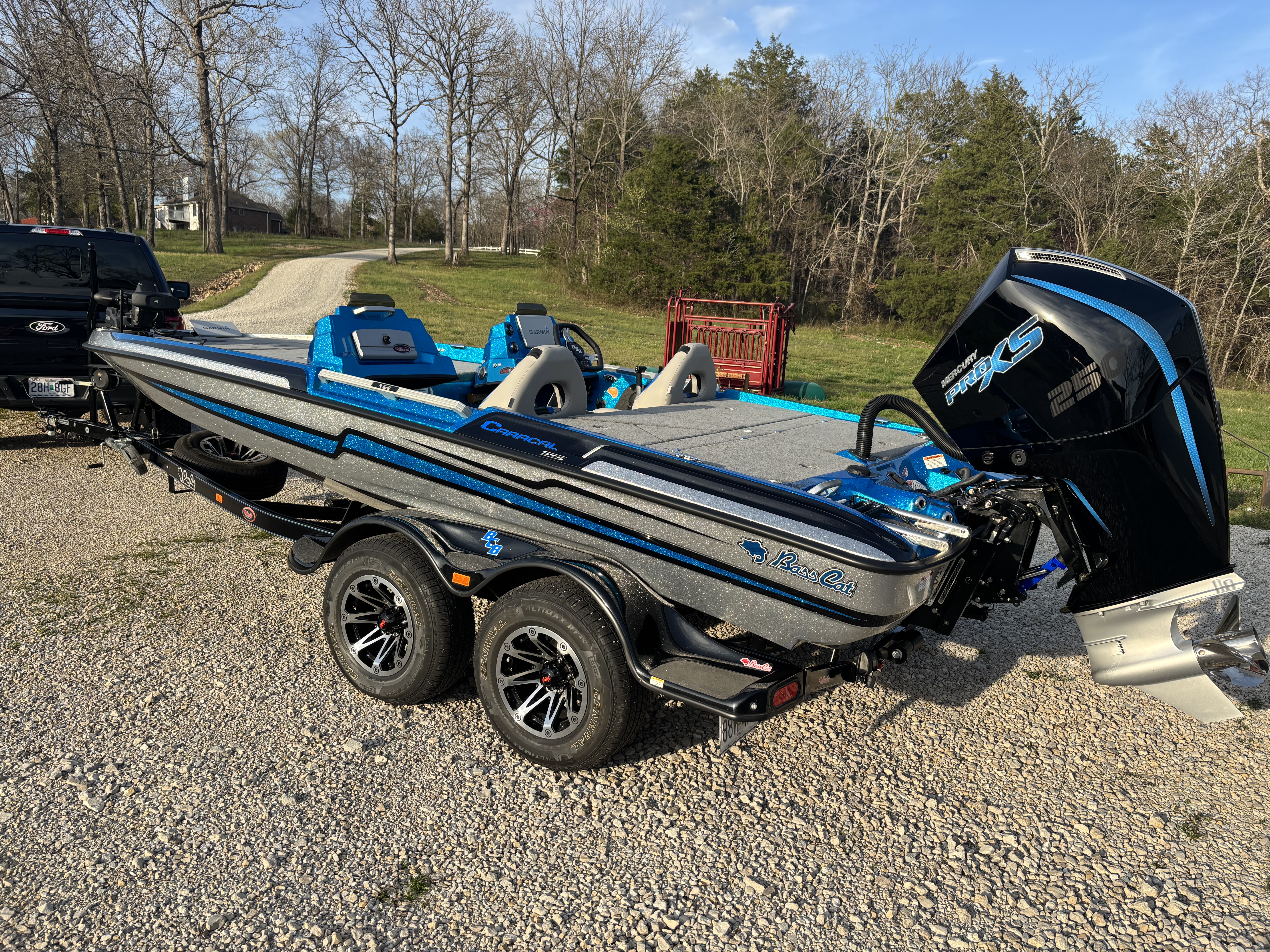 1. 2024 Caracal STS dual console with Mercury 250 Pro XS. 7 hours on motor with warranty till 2029.  Bobs hydraulic jackplate with gauge.  Garmin force tm with 2 garmin 10” graphs.  Padded deck, hotfoot, upgraded wheels on trailer.  Boat is like new with very little use!  $79,500 obo.  Serious inquiries only.  417-251-0075