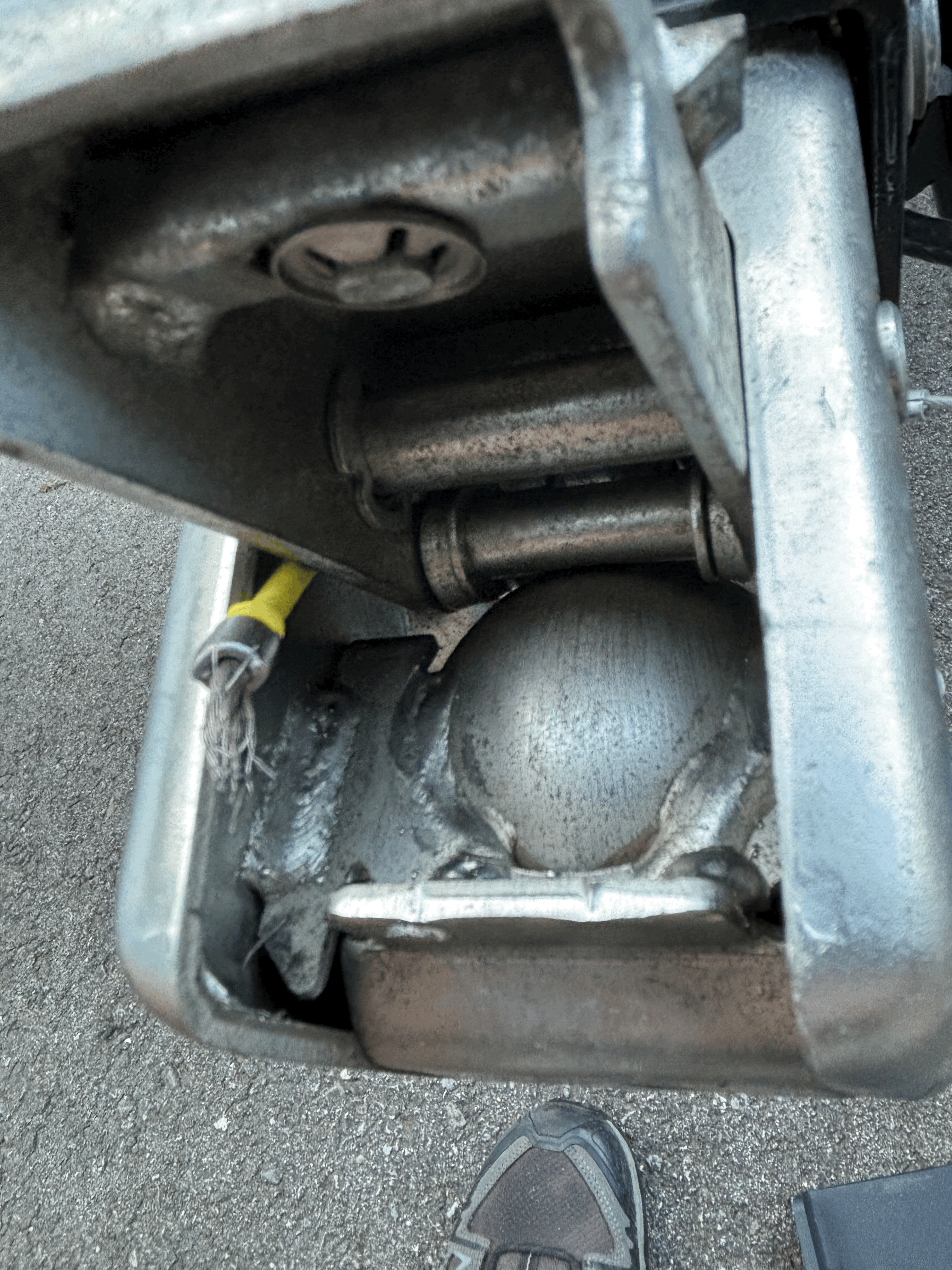 Yes, you’ve likely engaged your brakes when disconnecting, leaving to brake safety cable in place. Or they can get wrapped around the ball because they are springy, and if you connect them to the trailer or chain they wrap your ball and can get torn. The yellow is a visual indicator, and the brad retains the cable inside the notch (hole), with a C clip. They normally slide through he hole and the clip stops it unless it’s pulled, and the clip is sacrificial. You should have a white card with spare clips in the Owners Satchel.