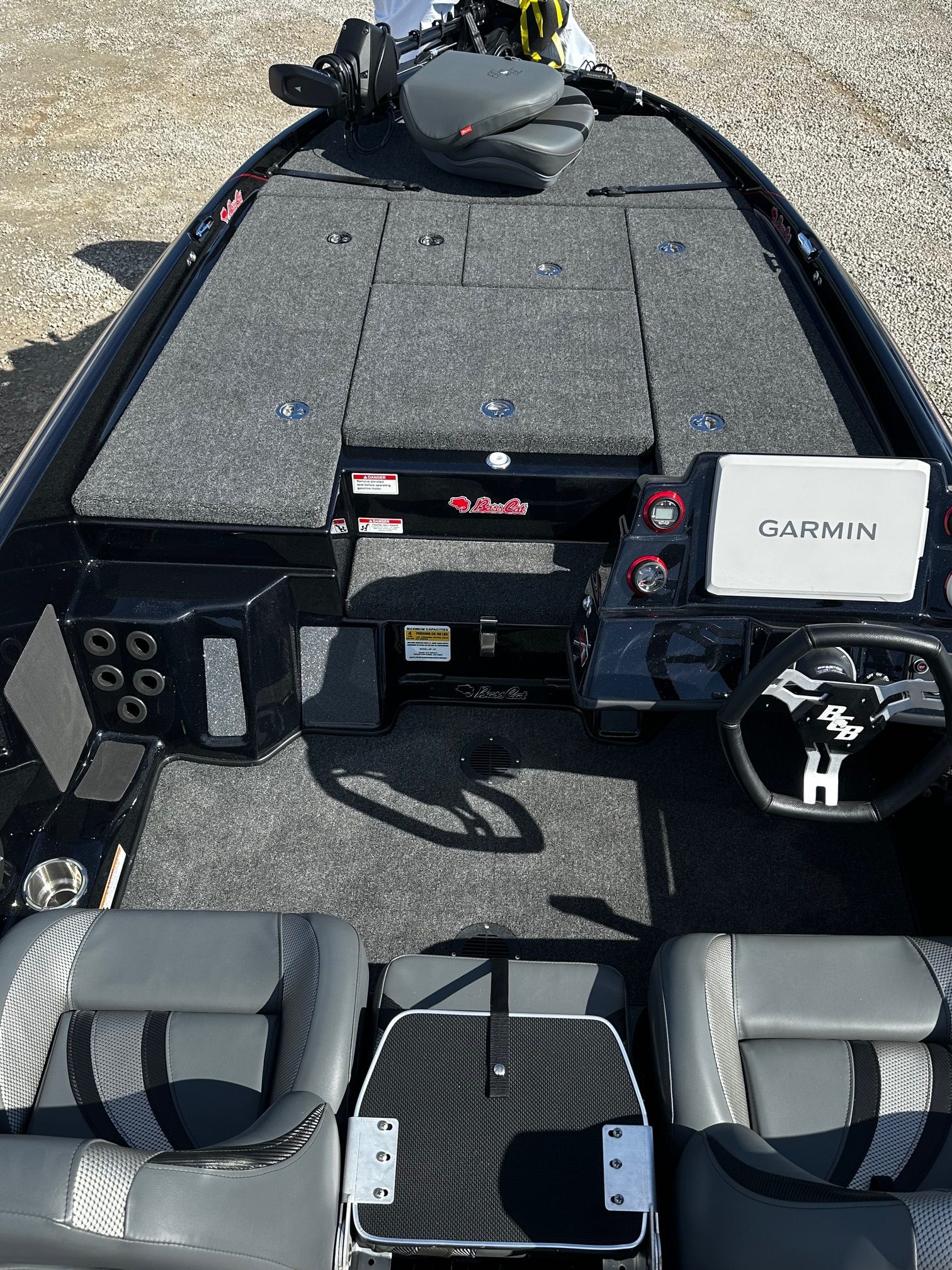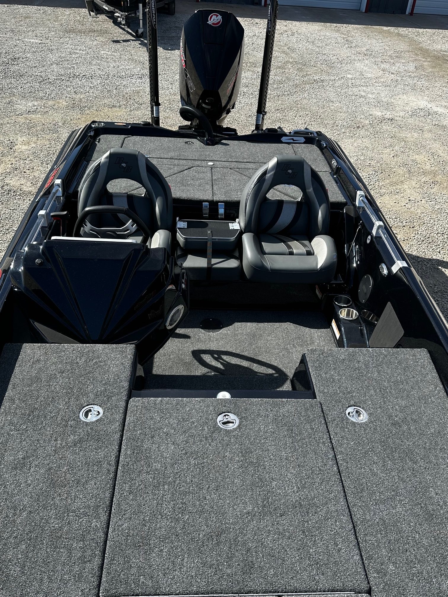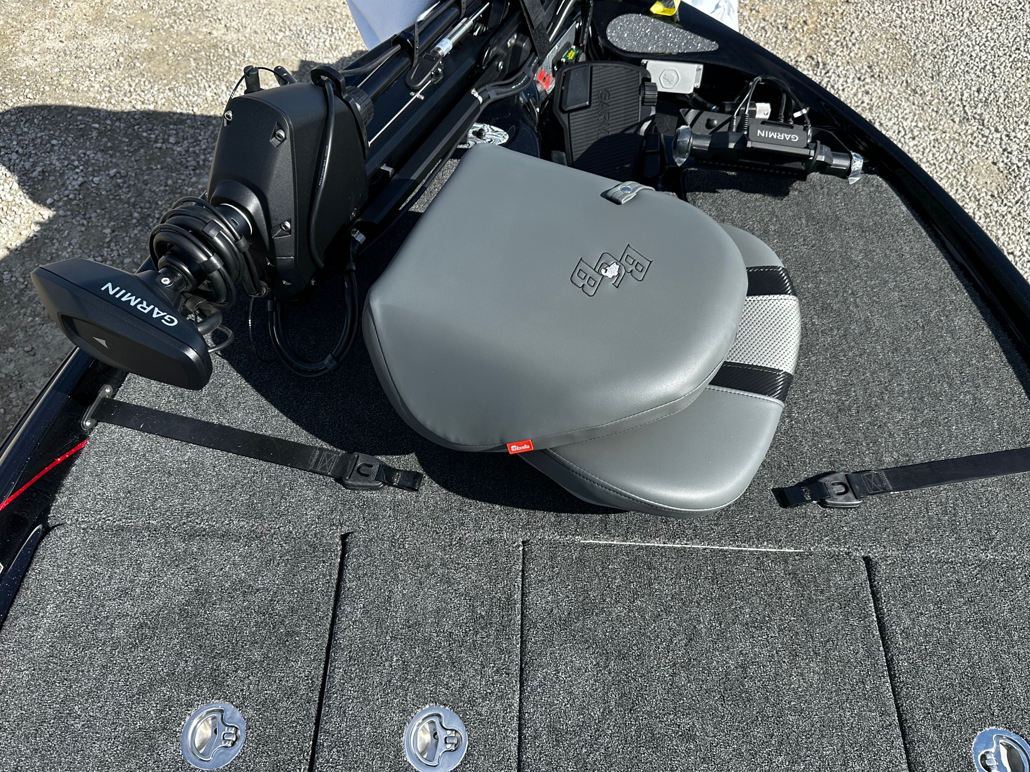 This boat is loaded and ready to fish right now! Mercury 250 Pro XS, Twin Power Pole Blades, Garmin Force Trolling Motor, Garmin 126 at the bow with a Live Scope and an LVS34, Garmin 126 on the console.