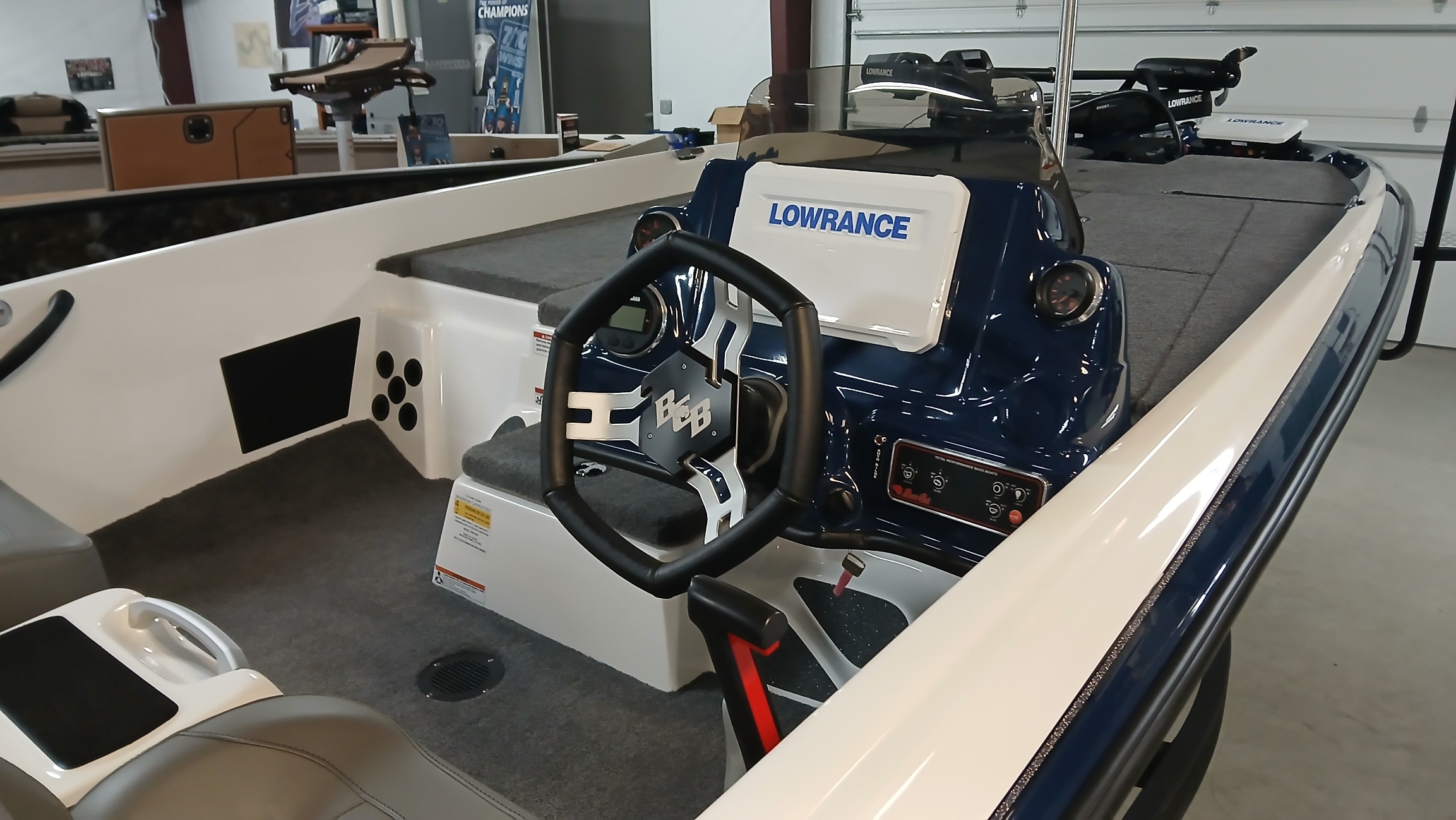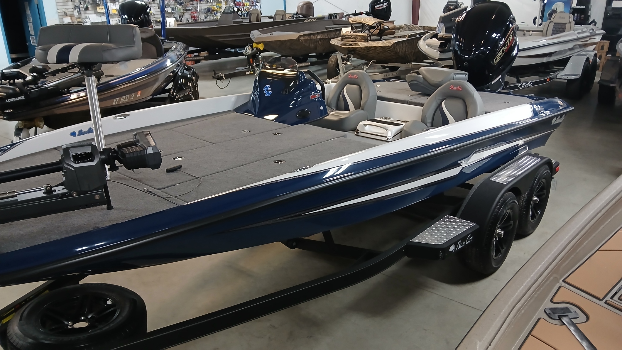 This Bass Cat was used in the 2026 Brochure and will be registered as new with full warranty.  This boat comes with some fantastic discounts:  Bass Cat has discounted it over $6000 for use as the brochure boat, it also is eligible for the $1500 rebate until Febuary 28th and is eligible for the Yamaha 5 year warranty until March 31st.  No better time to Buy!!! Was $66900.00,  now with new Boat Show rebate from Bass Cat, $65,400. This 2026 Pantera Classic comes loaded; Navy Blue Gel and White with the hook option, upgraded Yamaha VF200 SHO with digital tach and all the guages, hydraulic tilt steering, fibergalss step box, 31AGM starting battery with upgraded battery trays, includes 2 wet cell trolling batteries (can upgrade to Lithium for $998), Pro-Guide 3 Bank Charger, Keel Guard, Lowrance Ghost X trolling motor, Lowrance HDS9 Pro at the bow, Lowrance HDS10 Pro at the dash, units and trolling motor are linked together, all sitting on the new EZ Loader trailer.  Don't miss this fantastic buy from Bass Cat, these do not come along very often!!