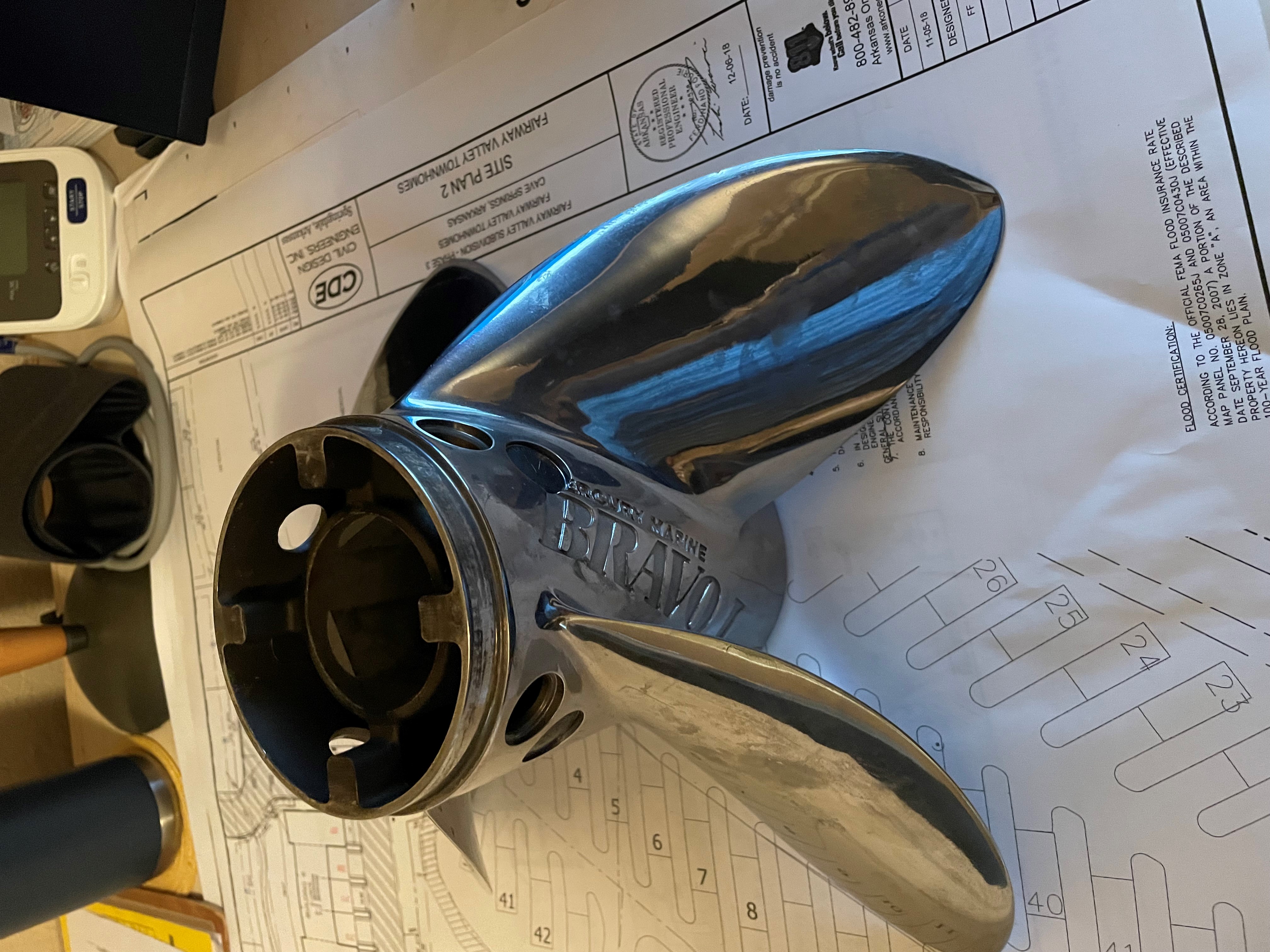 Bravo 1 XS 4 blade, 9 out of 10, has a burr on the leading edge of 1 blade. $500 TYD