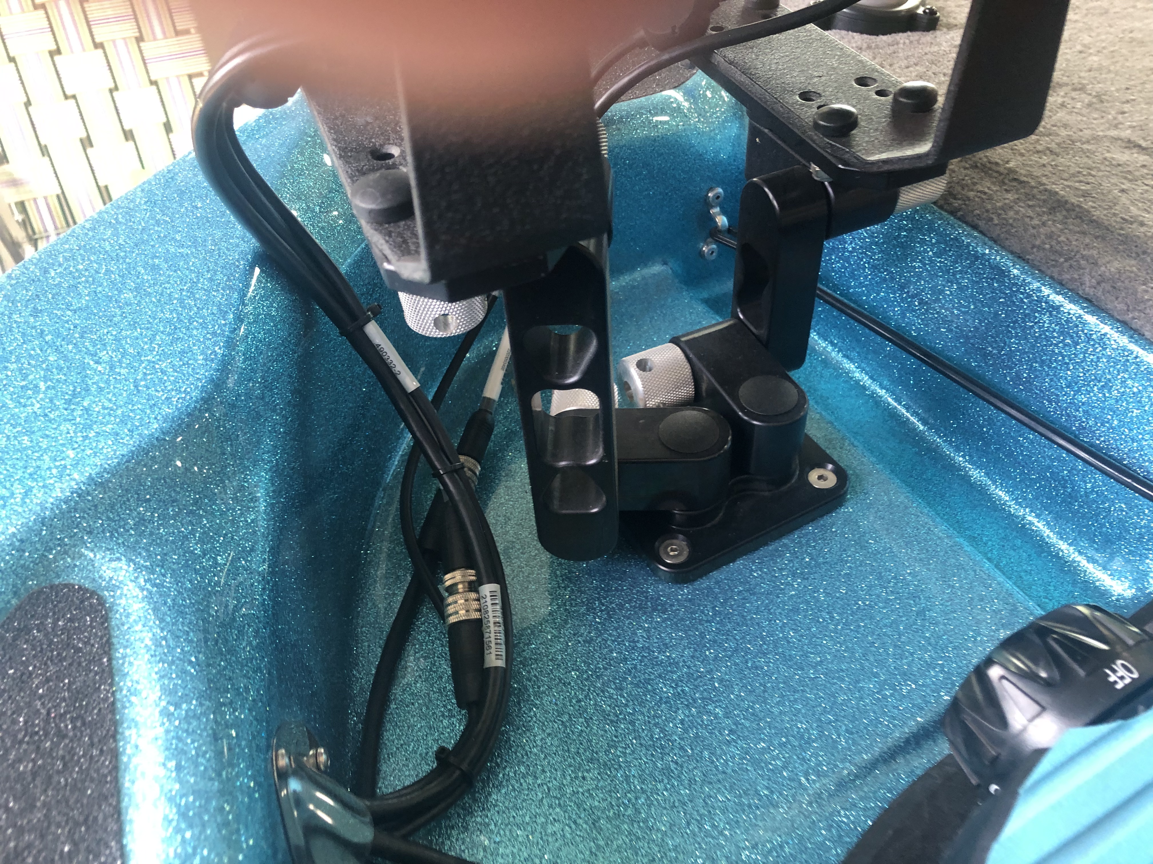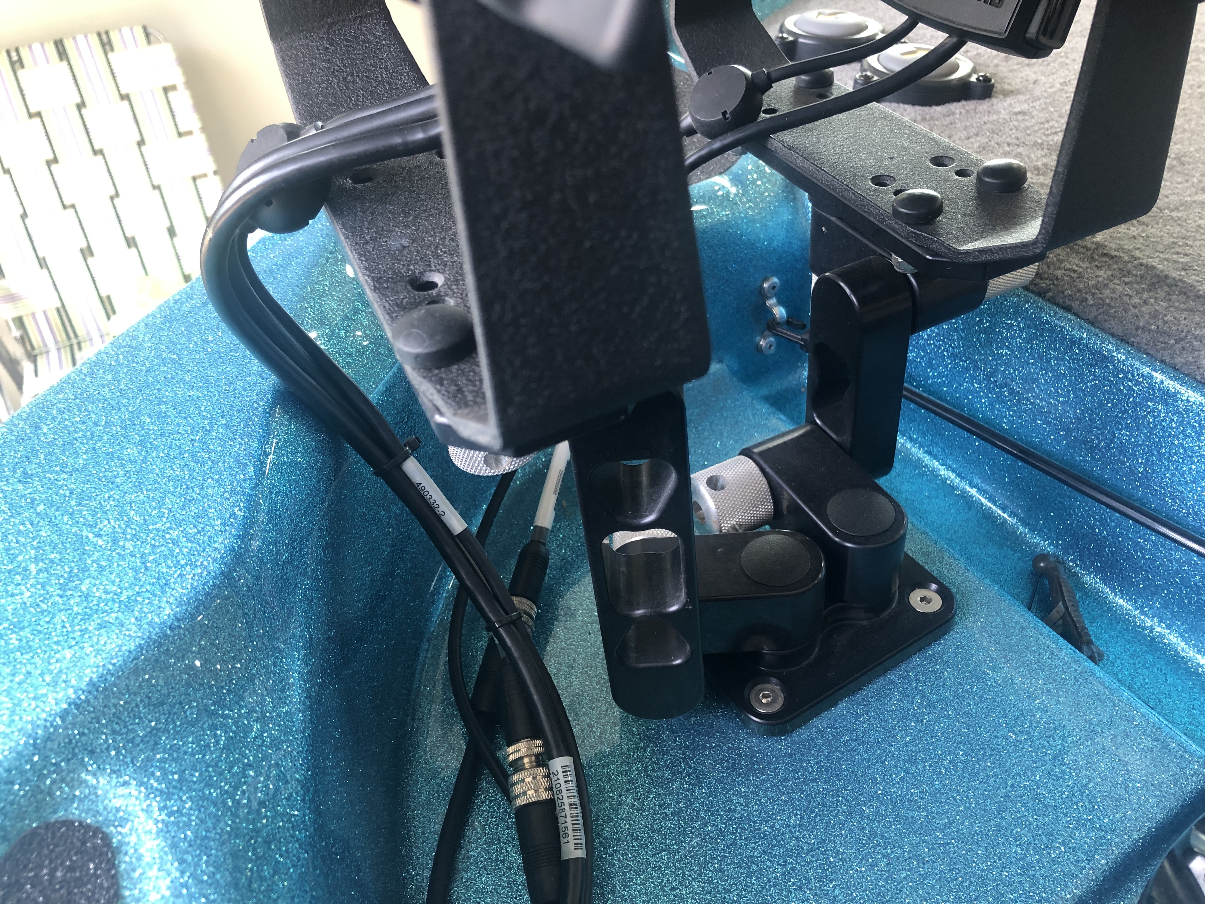 I was able to use one of the 3 holes from the Ram mount and installed a 5″ x 8″ x 1″ plastic backing underneath the fiberglass tray.