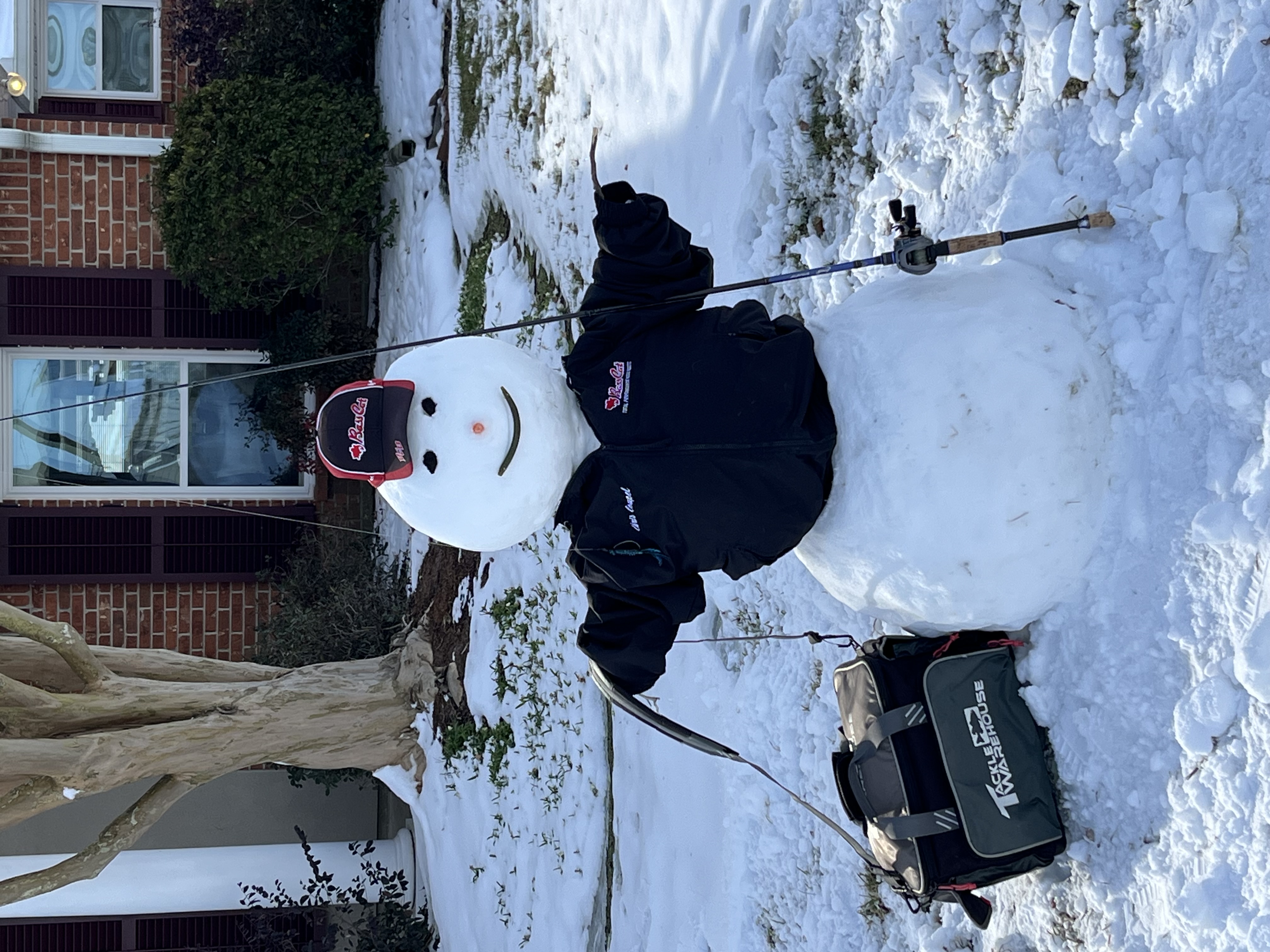 Crazy that this picture was just over a week ago and now we have a week of Temps near 80 degrees and the Bass are moving up to spawn. I’m going to put that braided line and Pit Boss that the snow man is holding to work Monday and Tuesday. Should be a couple of great days to be on the water down here.