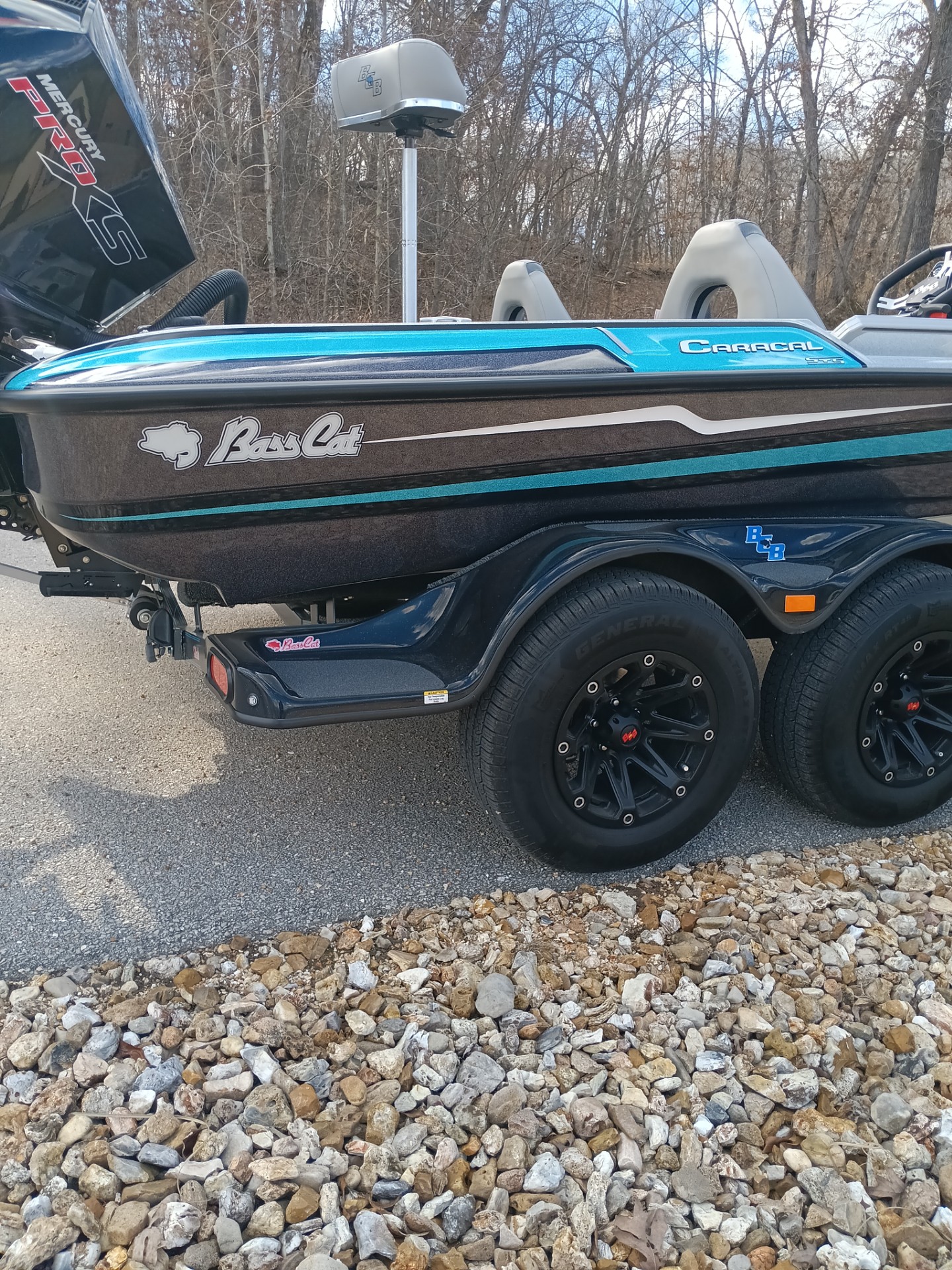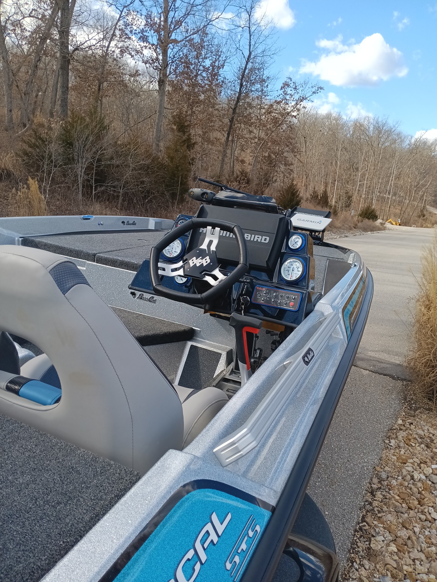 Beautiful Brand new Caracal STS Na Na hours, and sales tax paid! This one is the newest edition of the STS series and it lives up to the soft touch monicer.  Takes rough water and heavy chop great just sets the pad down and little or no hard hits! Still handles like a Bass Cat carves corners and get out of shallow water on plane easily.  Loaded with lots of options Ultrex 112# troller, 8' Power pole blades, Hamby's,BBT mount @ Bow,Hummingbird 12 g4 SI flush mounted @ console, Hummingbird 12 G4 Di @bow paired with Mega 360, also Garmin 126 SV /LS3 4TH HD transducer, Bobs hydraulic jack plate,  Aurora Strapless cover, Upgraded tires and Shooter Wheels, Fulton Xp Jack,hand brake, Backup lights,hotfoot w/ slider, Blinker trim,  and so much more standard on this premium model. Why pay thousands more when this one is ready to go and did I mention Mercury Warranty until May 2029! Call for pricing and details.  Joe Riley 913-530-1085