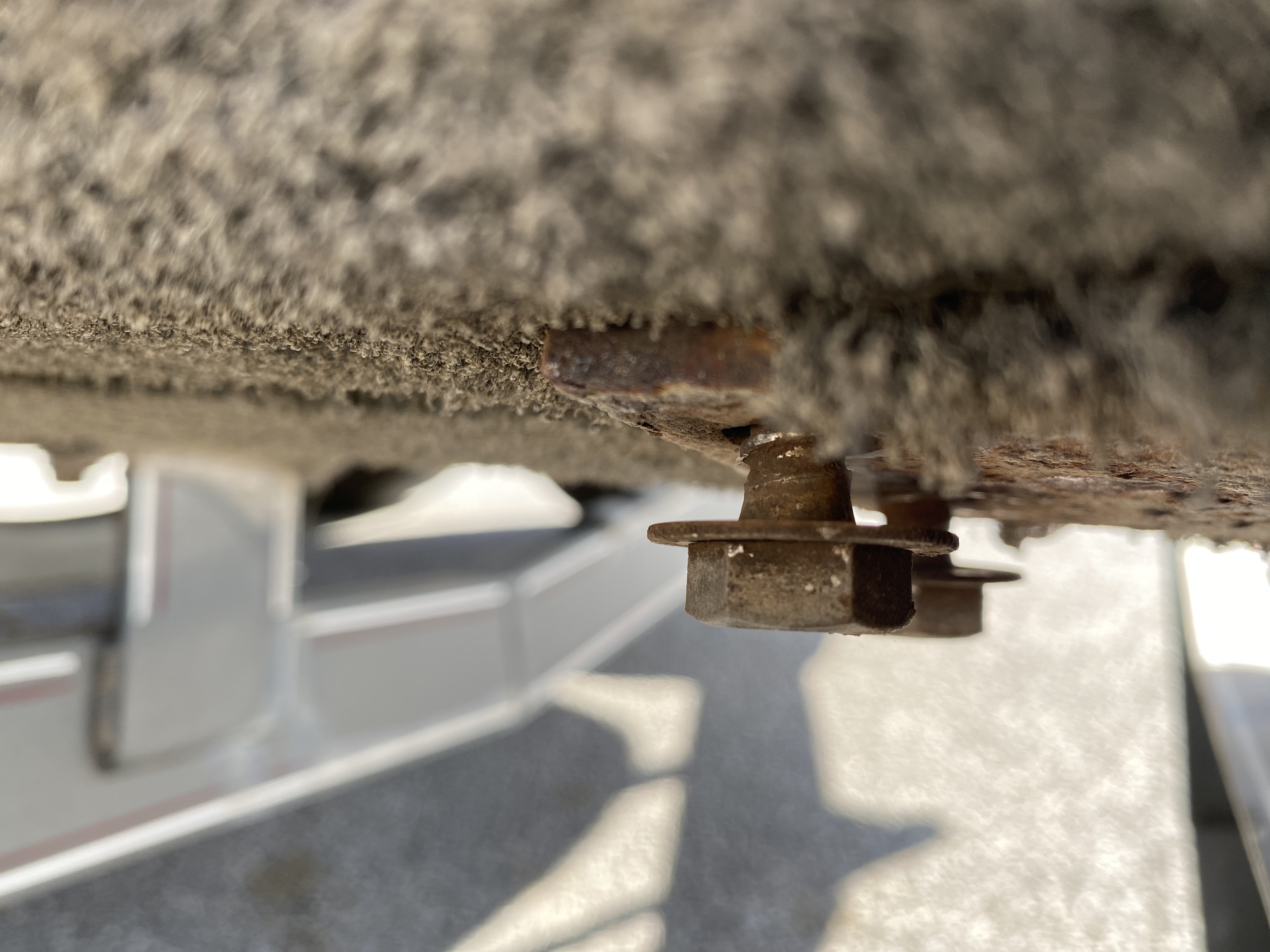 Been out of town working for a year..just got back and was gonna take my 14 Puma out and run it. Made it a 1/2 mile down the road and saw smoke coming from the port side, rear wheel. Pulled over and the fender is rubbing the tire to the point that it was shaving a groove on the inside. Back history..had the boat 5 years. Previous owner put 255/55/18 on it.  Always knew the tires were a little too wide because when I would hit a bump, my tire guy said it would rub the fender. Now it’s like the fender is almost laying on the tire. My question is what is the most likely senecio that caused this?  I’m sure the bunk boards are rotting because a couple bolt have back out a little bit.  See pics 3rd picture..should this piece be locked down tight or should you be able to move it slightly up and down? Thanks for the help BCB…this was a real bummer when I was fired up to run my Cat today!
