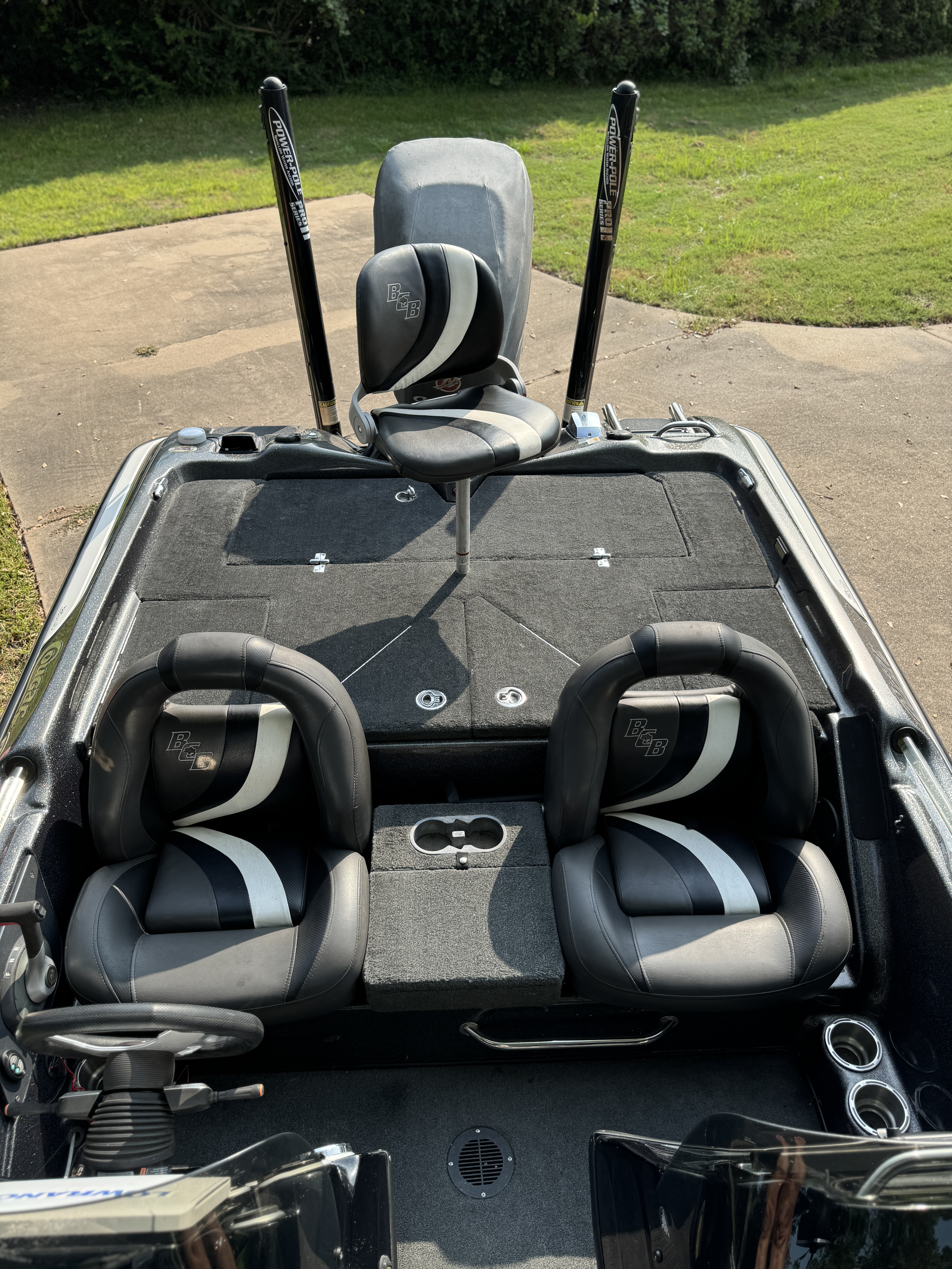 12″ HDS Gen 2 Touch at Console and 9″ HDS Touch at Bow; Hot Foot; 2 – 8′ Power Poles; Hydralic Jackplate; Hamby’s Keel Guard; full Aurora Cover
