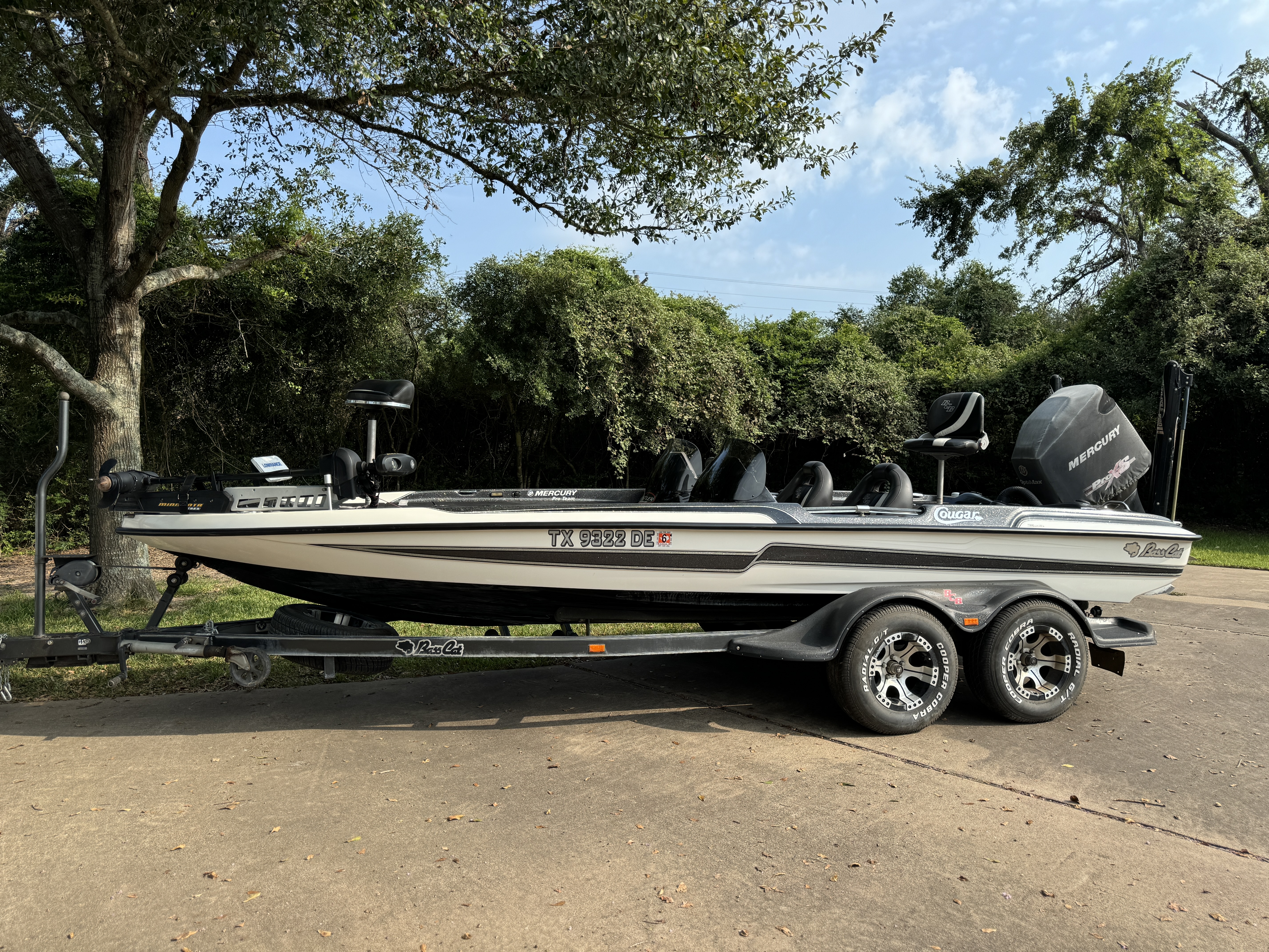 2015 DC Cougar with 2013 250 HP Mercury Pro XS (268 hours). Bass Cat Tandem Trailer with Brakes and Grab Pole. MF Ultrex Trolling Motor;
