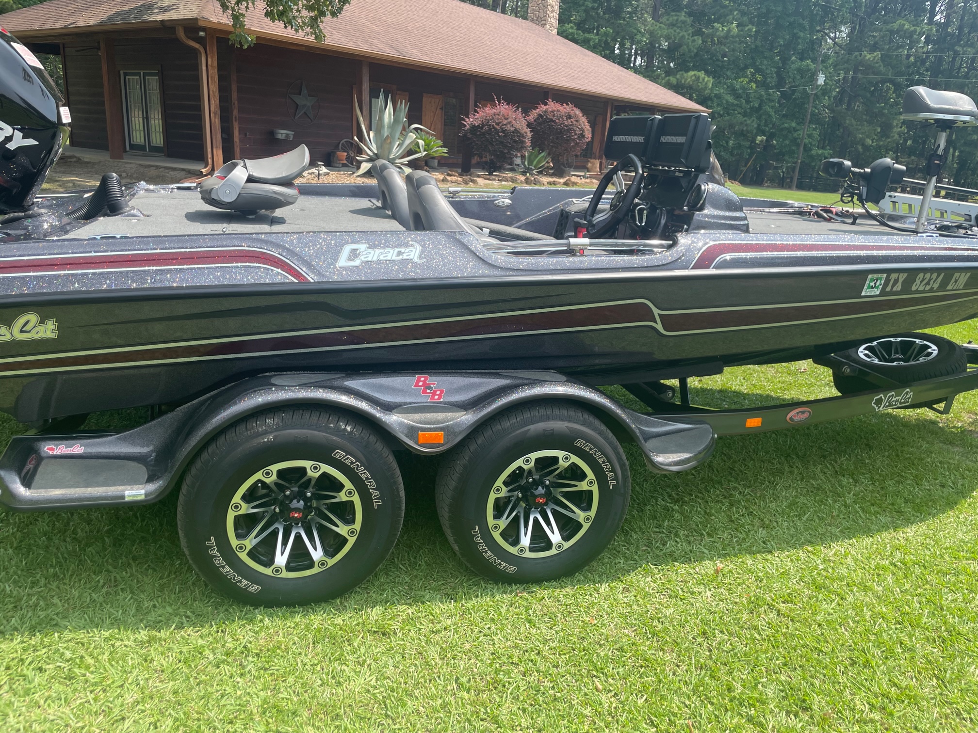 2018 Bass Cat Caracal Premium, Charcoal Mist top cap color, insert color Raspberry, boot color Black. 2019 Mercury 225, 2 stroke with 123 hours. Prop- 25 Fury, Atlas Jack Plate, Min Kota 4 bank charger, power poles, two Helix 10s G2n with mid south lake map card at helm, one helix 10 -G2n at bow, Min Kota Ultrex 112 lb , 52” trolling with remote and linked to depth finders. Stomp controls as well as remote for power poles, Mercury Smart Craft Gauge, rod box ventilation , LED lighting throughout boat and trailer. Prowler rims with new tires on trailer as well as spare, PPG paint on trailer. Boat is like brand new, fully detailed inside and out, will be detailed again for new owner. Everything works like brand new, boat will come with all original BCB papers and BCB bag with 4 sets of deck lid keys and 2 boat keys. $49K Deep East Texas Area( Toledo Bend/Sam Rayburn) Any questions please as